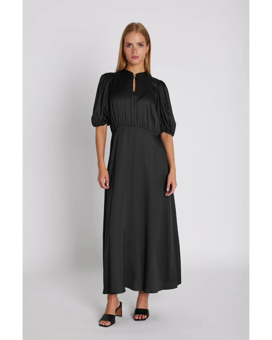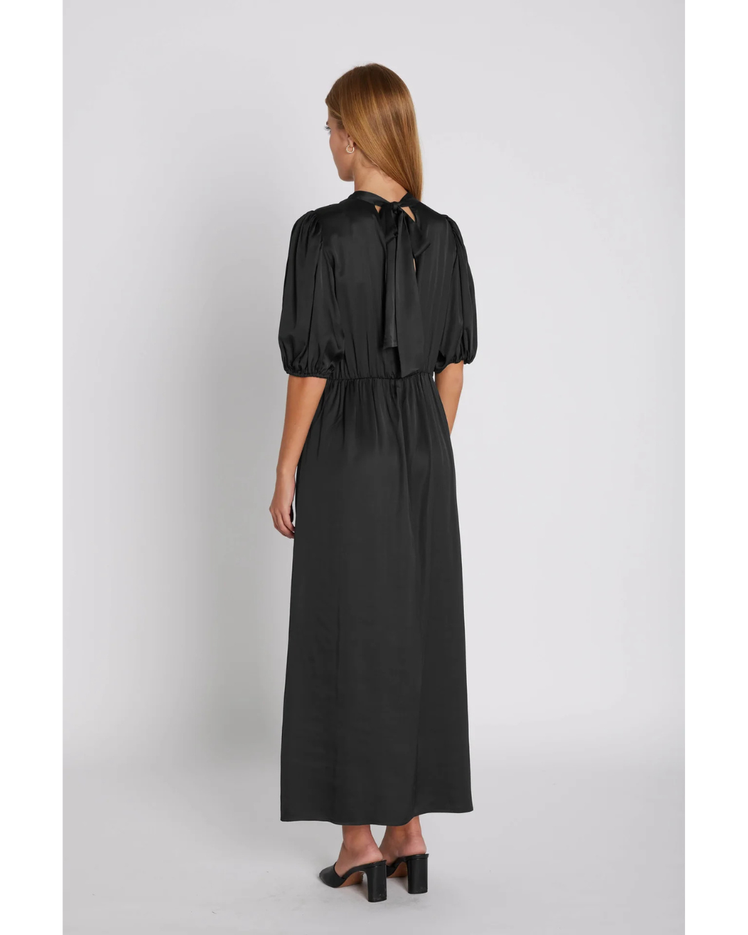 TheThe Lorelei Dress by Rue De Femme combines understated sophistication with thoughtful design details. Crafted in timeless black, this midi dress features a flattering silhouette with subtle puff sleeves that add gentle volume to the shoulders, a delicate neck tie for refined elegance, and a waist-defining detail that creates a soft, sculpted profile. The relaxed fit moves with you throughout the day, making it equally suited to evening events paired with heels or casual daytime wear with sandals and a light jacket. A versatile wardrobe essential that delivers polish without pretension.