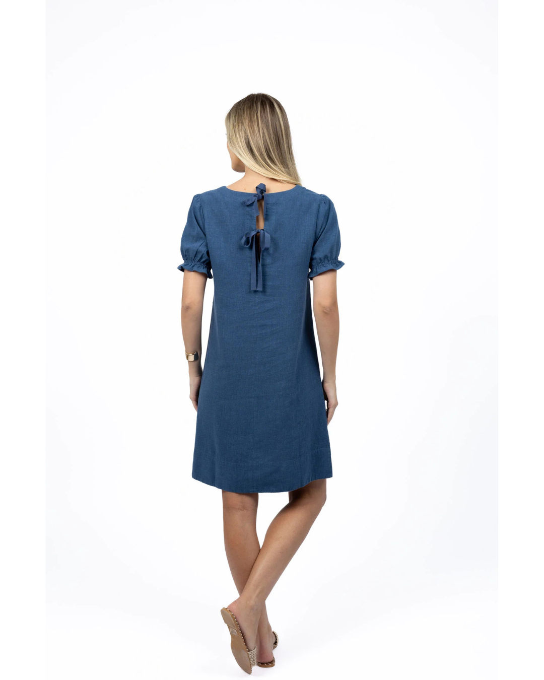 The Humidity Sana Shift Dress in Ocean Blue combines timeless style with modern comfort. Made from a soft, breathable linen blend, this dress offers a cool, non-sheer fabric perfect for warmer days. Its elegant slightly puffed sleeves with elastic shirring ensure a comfortable, flattering fit, while the delicate ribbon tie at the back neck adds a subtle, refined detail. Designed to sit at or just above the knee, this easy-wear shift dress is both versatile and effortlessly chic for any occasion.