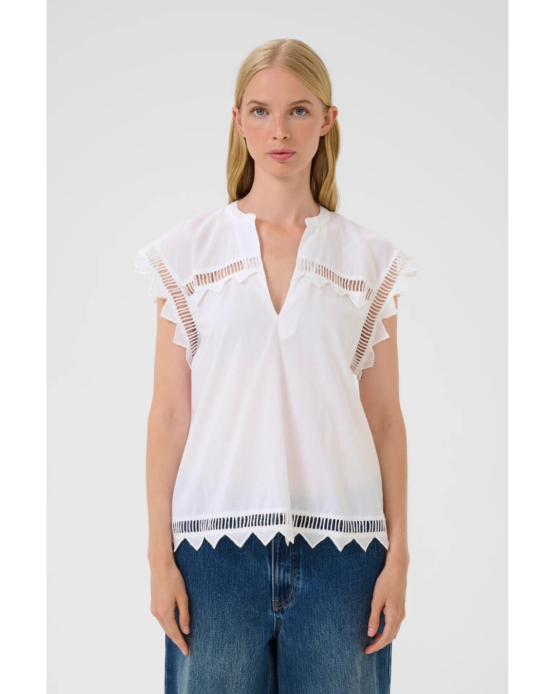 The Karen By Simonsen Vigdis Tee in Bright White offers a relaxed yet refined style with its oversized silhouette and dropped shoulders. Featuring a subtle scattered graphic across the chest and elbow-length sleeves, it combines comfort with modern design. The classic crew neckline and loose fit make it an effortless choice for a casual, contemporary look.