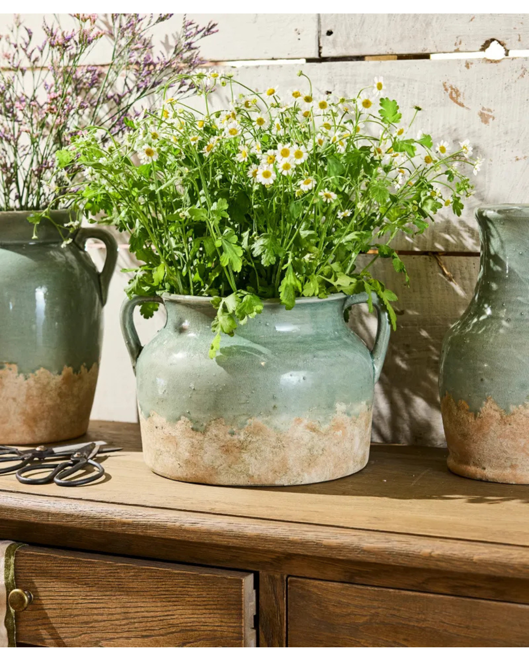 The French Country Varese Vessel Wide in pale blue infuses your space with Mediterranean charm and a summery ambiance. Featuring a blend of a soft pale blue glaze and raw, unglazed terracotta, it emphasizes the natural, handcrafted texture of the clay. Measuring 30cm long, 27.5cm wide, and 19.5cm high, this vessel is perfect for decorative use. Because terracotta is porous, use a waterproof container inside if displaying fresh flowers. Maintenance is simple—just wipe clean with a damp cloth and avoid harsh chemicals to preserve its finish.
