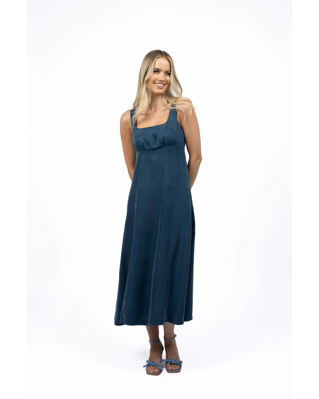 Introducing the Tallulah Dress in Navy, your new summer staple. Its linen fabric keeps you cool and its classic A-line shape flatters any figure. The square neckline and back darts add elegant touches, while the invisible zipper and midweight fabric make it comfortable to wear. Dress it up or down, this dress does it all.