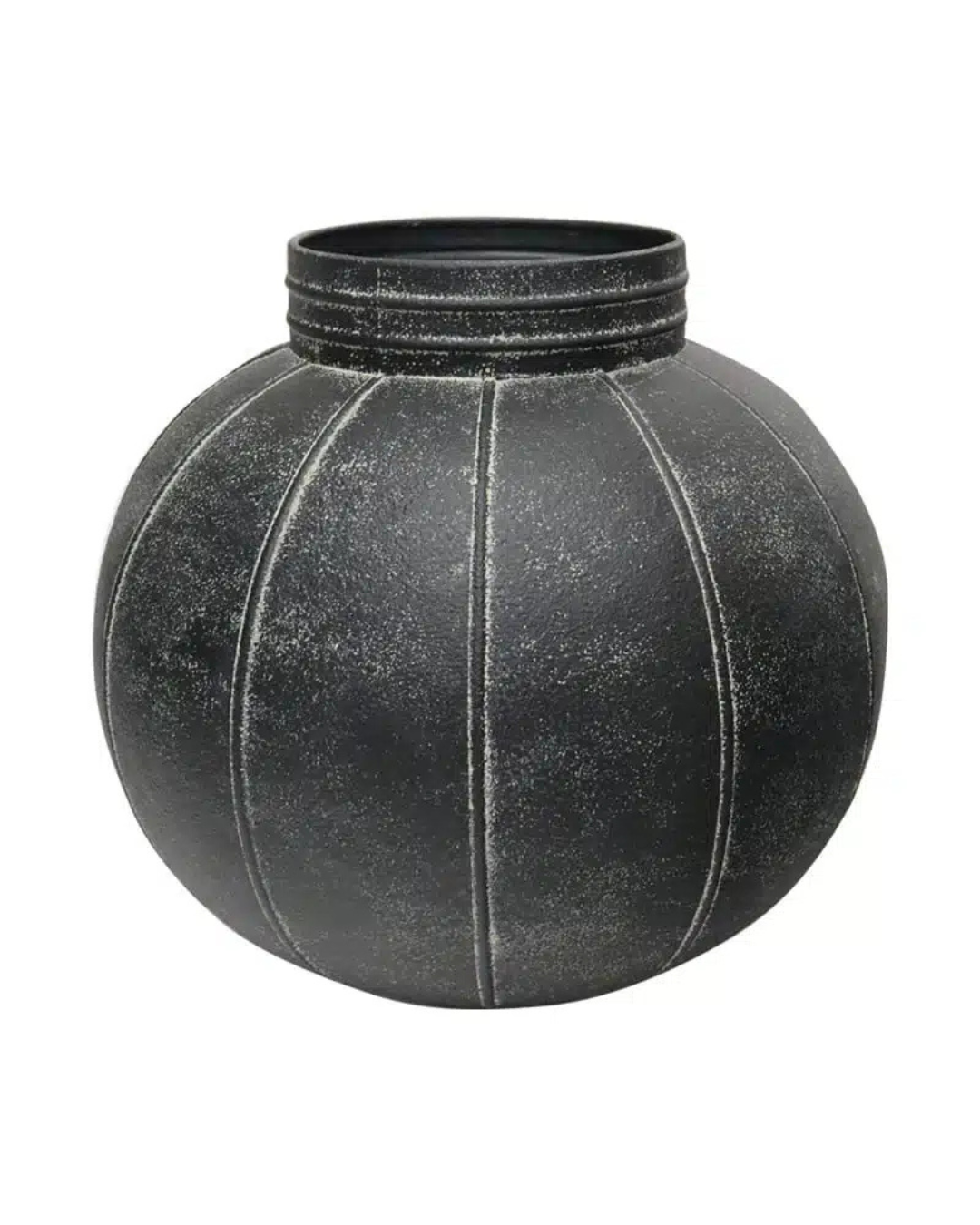 The Dawn metal vessel introduces dramatic sophistication with its bold black finish and generous proportions. Measuring 35 × 35 × 31 cm, this substantial piece commands presence while maintaining the clean-lined aesthetic of French country design. The darker palette offers striking contrast against neutral interiors or complements moody, layered décor schemes. Its wider, lower profile makes it ideal for coffee tables, floor displays, or as a grounding element in styled vignettes. The vessel's architectural form works beautifully filled with seasonal botanicals or as a sculptural statement piece on its own, adding depth and visual interest to contemporary and traditional spaces alike.