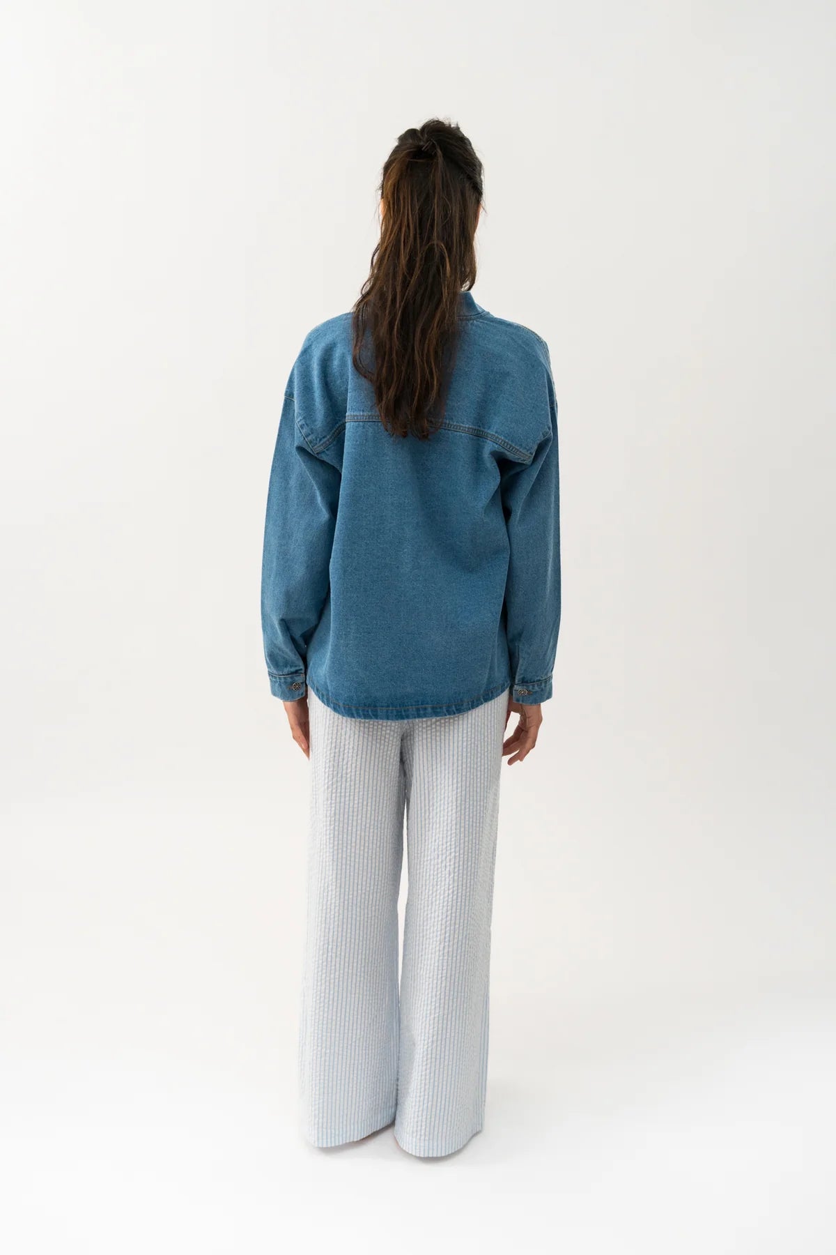Effortlessly elevate your wardrobe with this versatile denim jacket from Lolly's Laundry. Crafted from classic-washed denim, it features distinctive hand-stitched details and embroidered patchwork accents that add character and visual interest. The open design with no closure offers styling flexibility, while generous front pockets in contrasting fabric provide both function and design contrast. Cut with a relaxed silhouette and dropped shoulders for comfortable layering, it's finished with buttoned cuffs for a polished touch. An essential piece that transitions seamlessly across seasons.