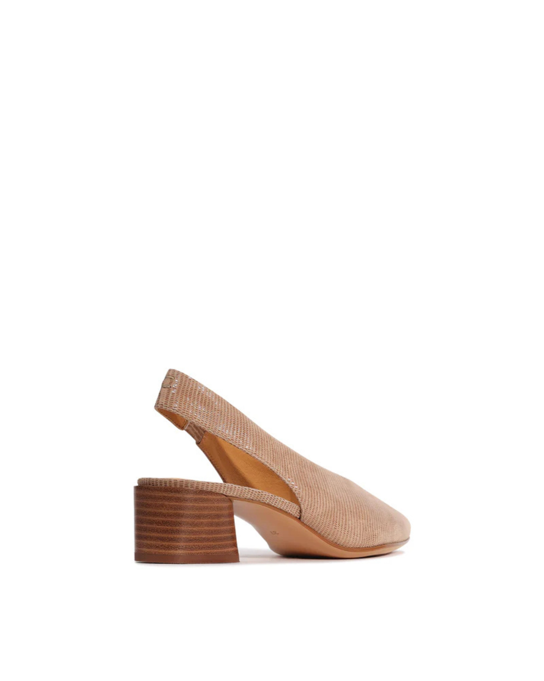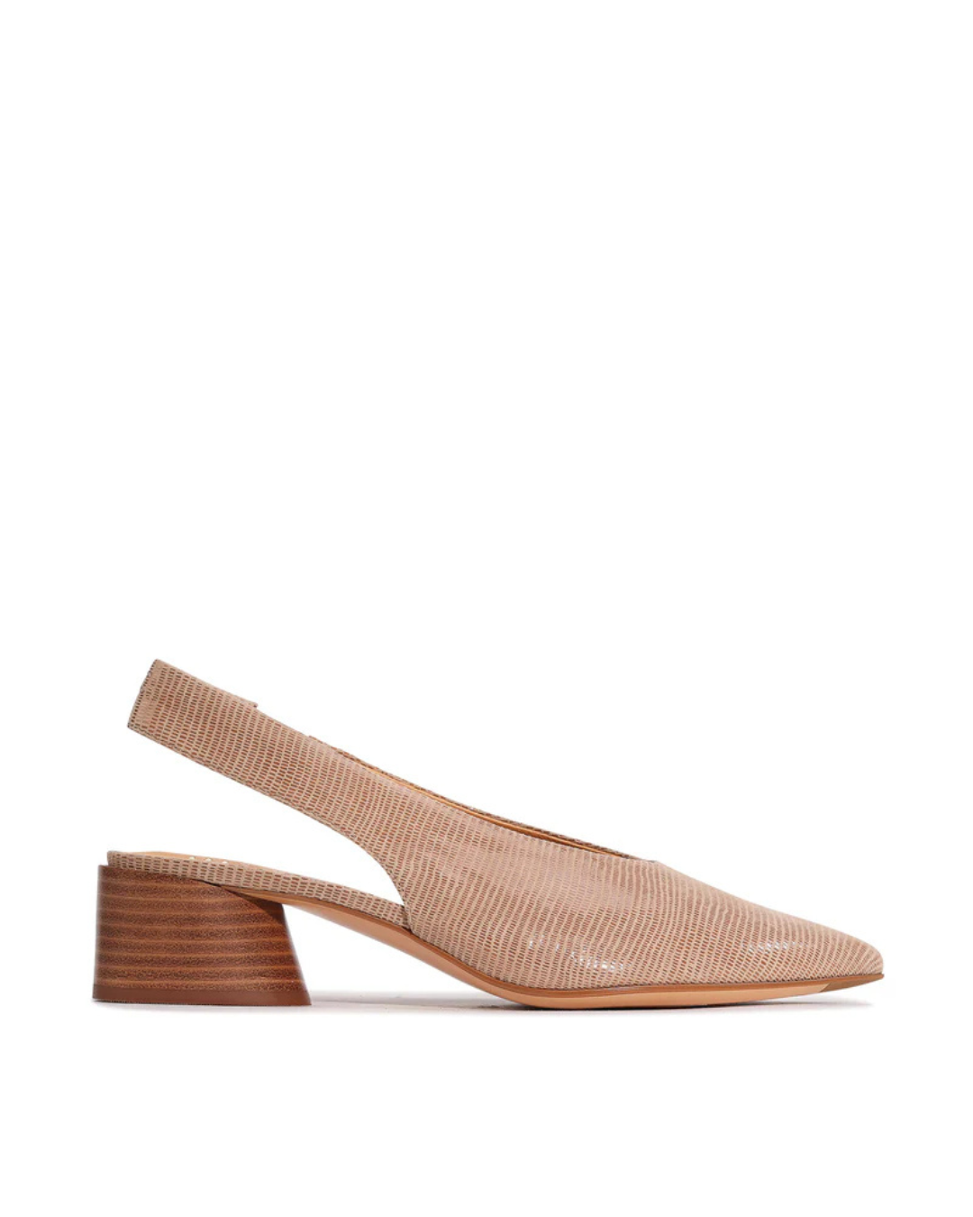 The EOS Hatti Slingback Flats in Sand blend classic elegance with practical design. Crafted from premium leather, their pointed toe and mid-height block heel create a polished silhouette ideal for both work and casual wear. A hidden elastic beneath the buckle ensures a secure, comfortable fit that moves with you, while dual heavy hand stitching at the back enhances durability and showcases expert craftsmanship. These flats offer a refined yet reliable option for everyday sophistication.