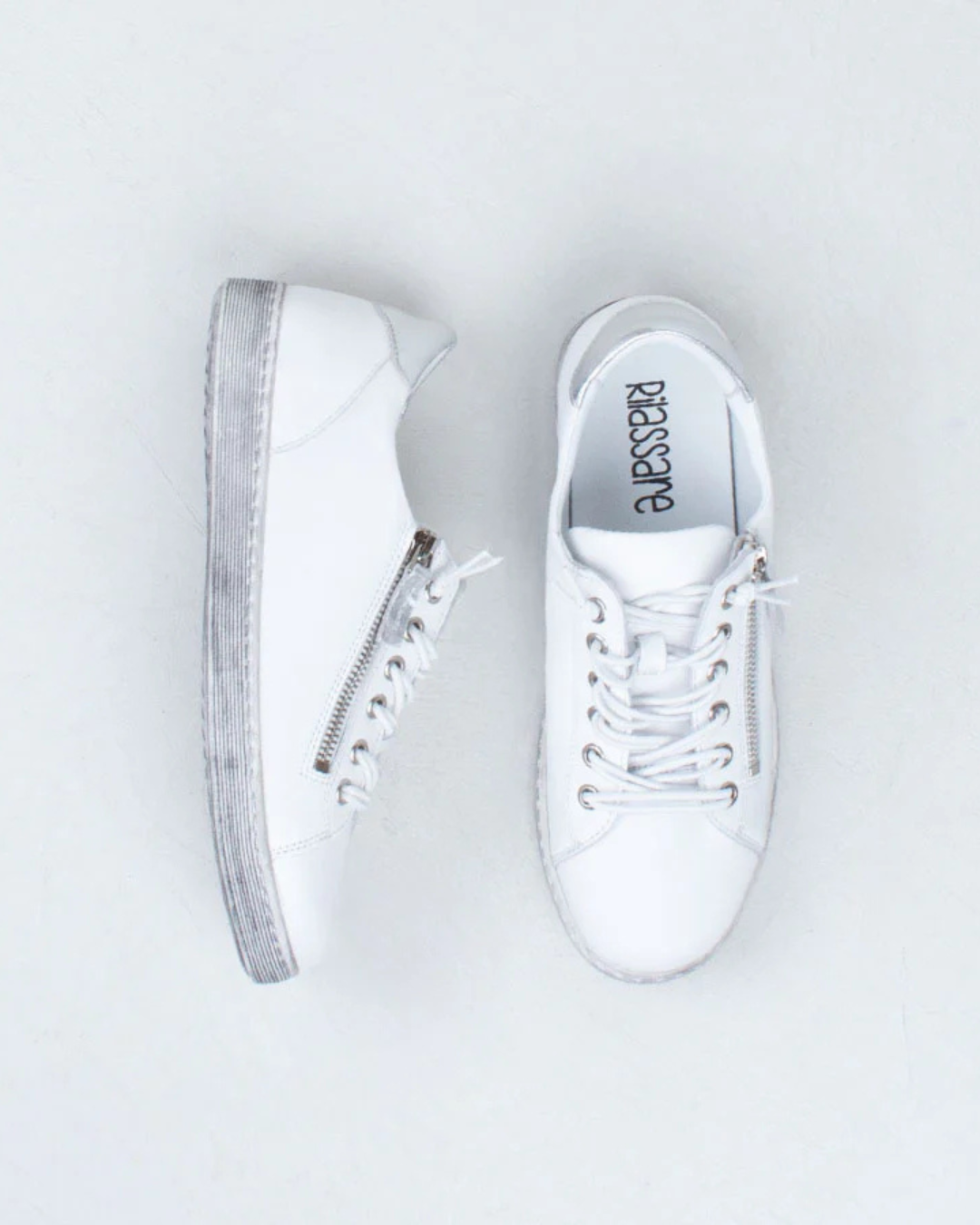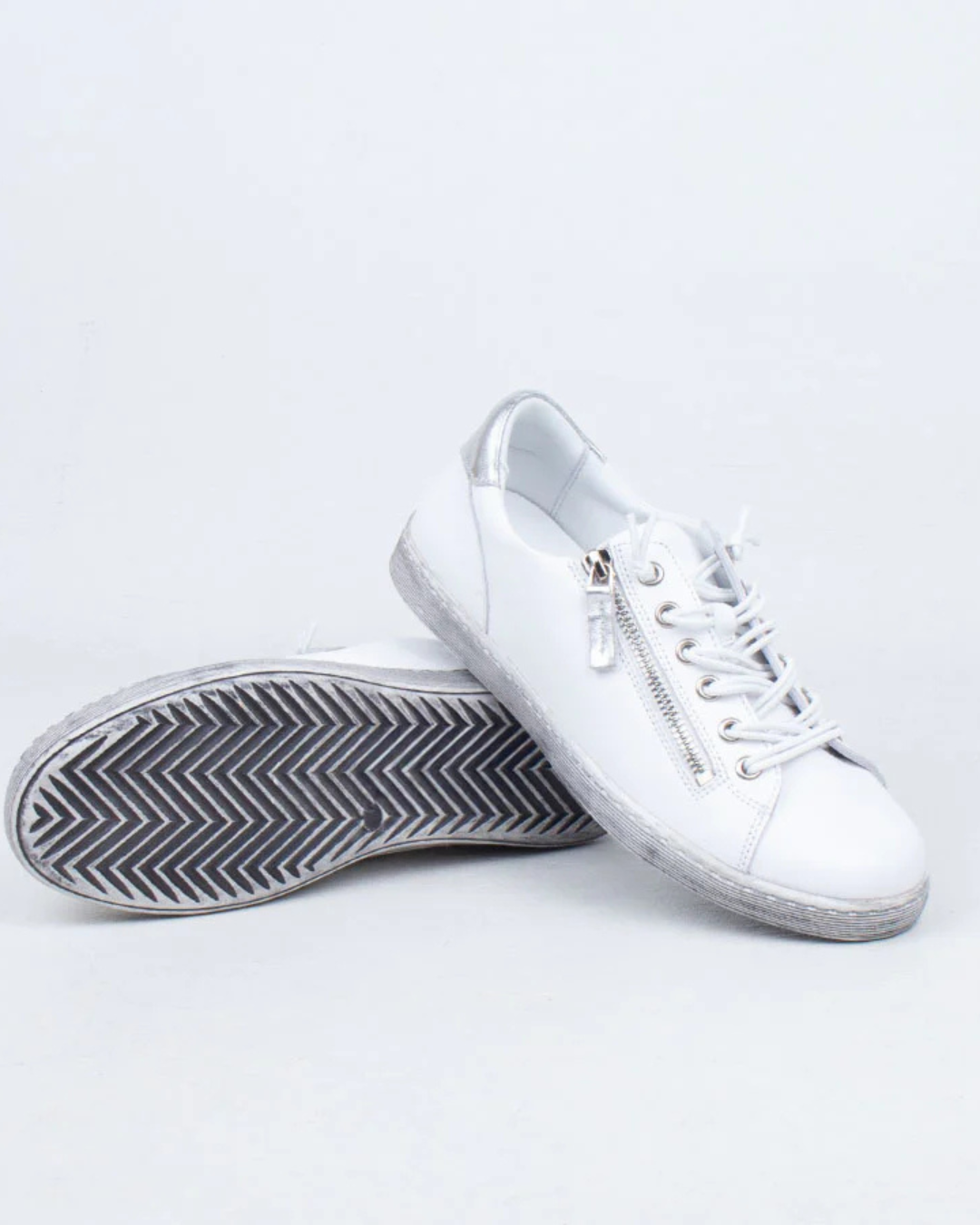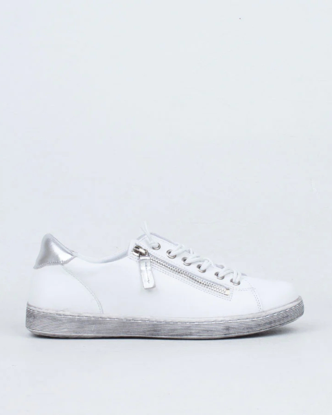 The Rilassare Temi sneaker combines practicality with understated style for the modern, active lifestyle. Constructed with a premium leather upper and lined interior, this shoe prioritises accessibility through elasticated no-tie laces and a side zip closure—no fumbling required. The 2.5cm cushioned sole provides reliable support throughout the day, while removable insoles accommodate custom orthotics seamlessly. With a manmade sole designed for durability and a standard fit, the Temi delivers the comfort and convenience you need without compromising on quality or aesthetics.