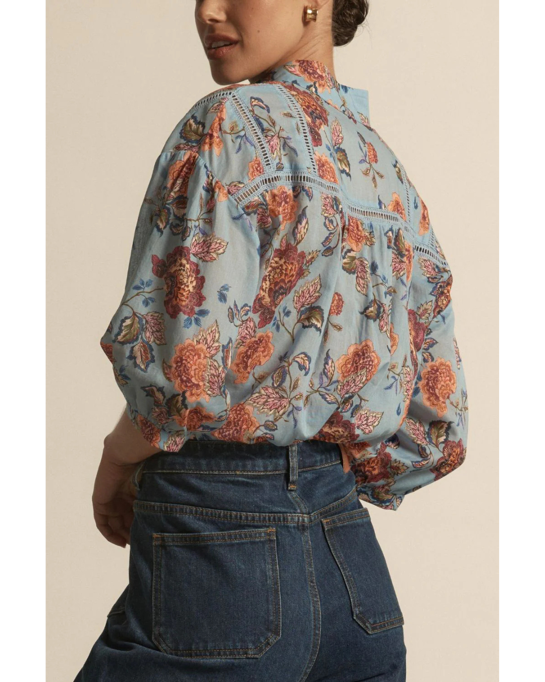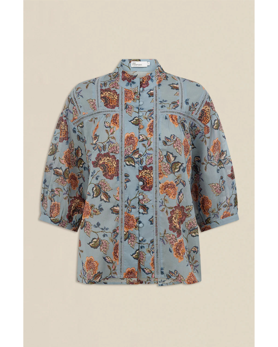The Daydream top represents a refined take on our signature silhouette—a versatile essential that balances structure with understated elegance. Crafted from 100% cotton, this best-selling design features a relaxed, dropped shoulder with three-quarter sleeves perfect for everyday wear. Intricate ladder lace adorns the shoulders, yoke, and front button placket, adding sophisticated depth without compromising comfort. The structured neckstand provides flexible styling options, while the Twilight Bloom colourway—a cool blue base warmed by delicate florals—creates an effortlessly polished aesthetic. Distinctly Zoe Kratzmann, this elevated essential feels both refined and easy to wear.