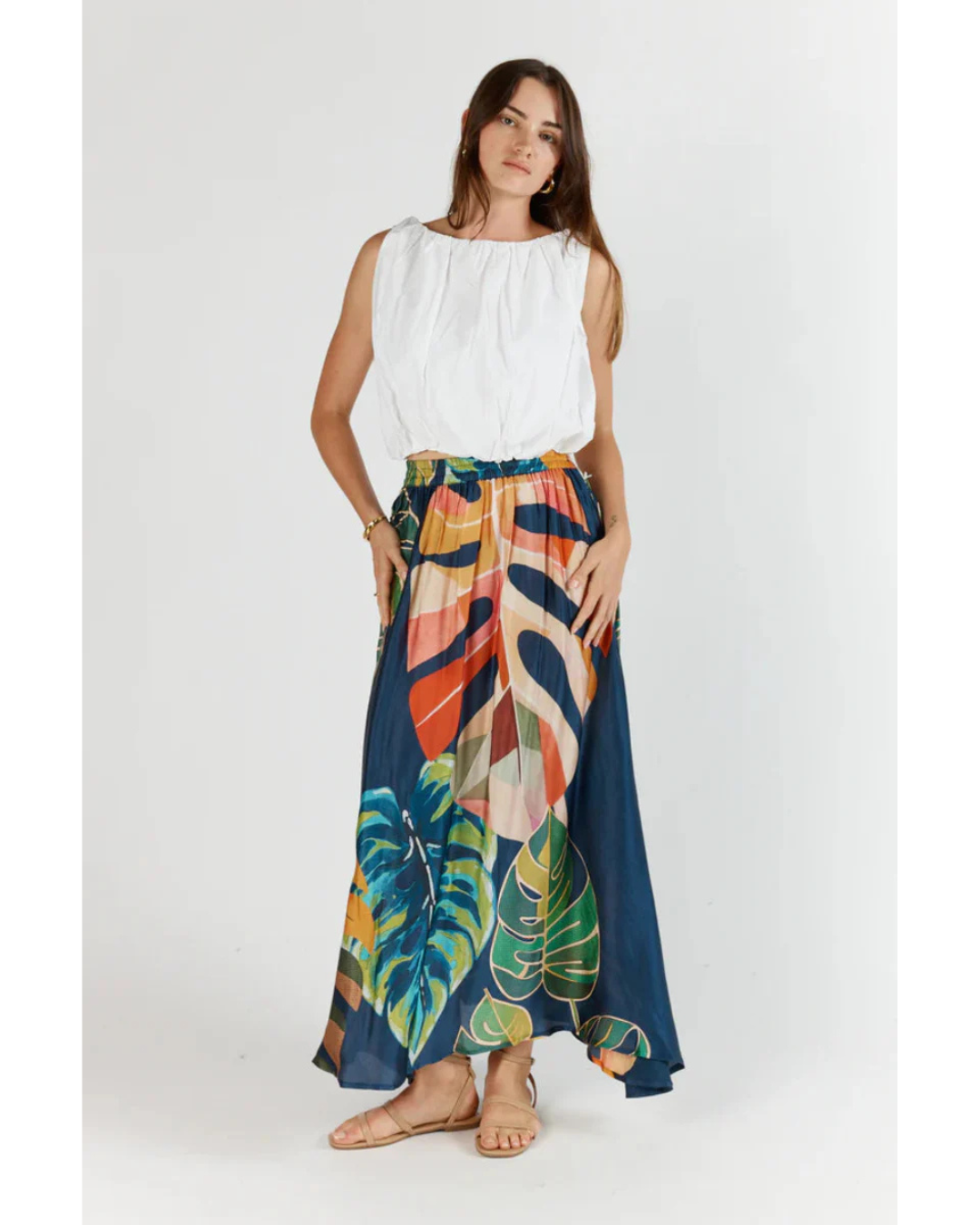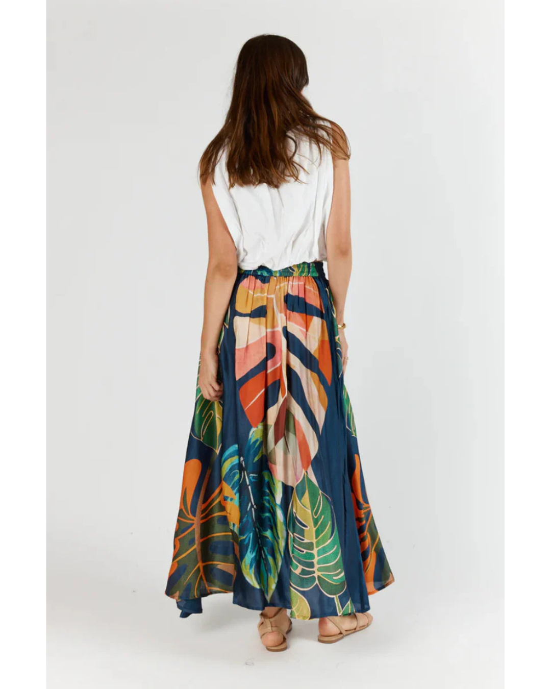 The Itami Bleus Skirt in Navy is a sophisticated wardrobe essential crafted from luxurious 100% viscose satin that drapes beautifully against the body. This versatile piece features a comfortable elasticated waist and practical side seam pockets, making it effortlessly wearable from morning meetings to evening occasions. The elegant maxi length creates a refined silhouette that flatters all body types, while the fluid fabric ensures graceful movement. True to size and designed for those who appreciate quality construction and timeless style.