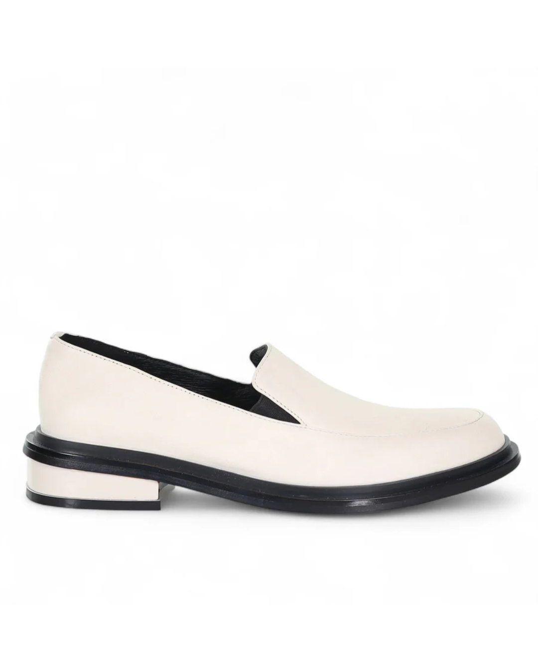 The Sinclair loafer brings contemporary style to your everyday rotation. As the sister style to the Slone boot, this sleek design features elasticated sides for effortless slip-on wear. Choose from ivory with a leather-covered block heel for understated elegance, silver for a polished finish, or black with a striking leopard panel for added personality. Crafted with a leather upper and lining, paired with a durable rubber sole. Perfect styled with tailored trousers, jeans, and a blazer for fashion-forward, chic looks.