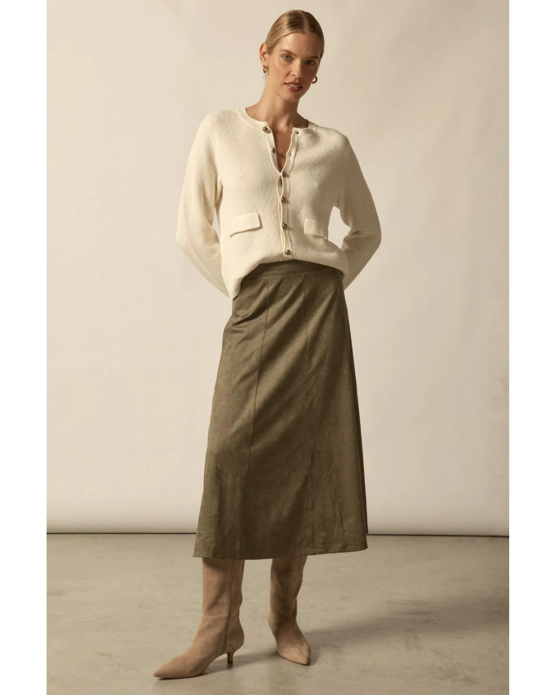 The Camber Knit is an understated essential that effortlessly elevates your winter wardrobe. Crafted from a thoughtfully blended merino wool and cotton mix, this piece delivers genuine warmth without compromising on breathability. The slouchy waffle knit construction creates an inviting, relaxed silhouette that feels as good as it looks—perfect for layering or wearing solo. Subtle details like faux pocket flaps and antique brass buttons add quiet sophistication, while the full-length cut works beautifully tucked in or left loose. A versatile layer that brings understated texture to modern, everyday dressing.